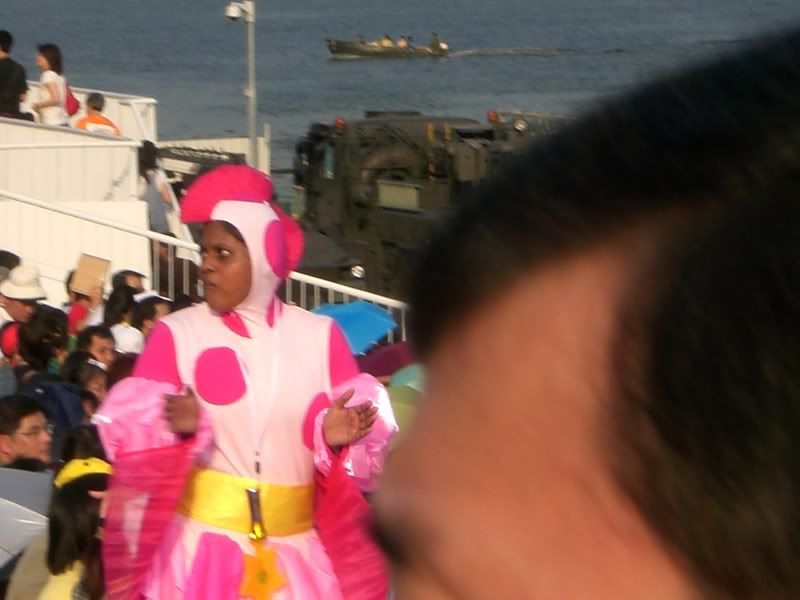 See the person in that chicken/fish suit ...